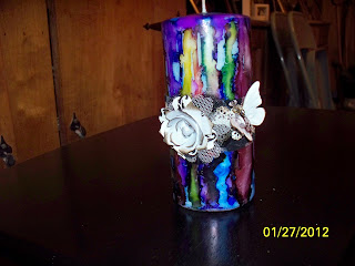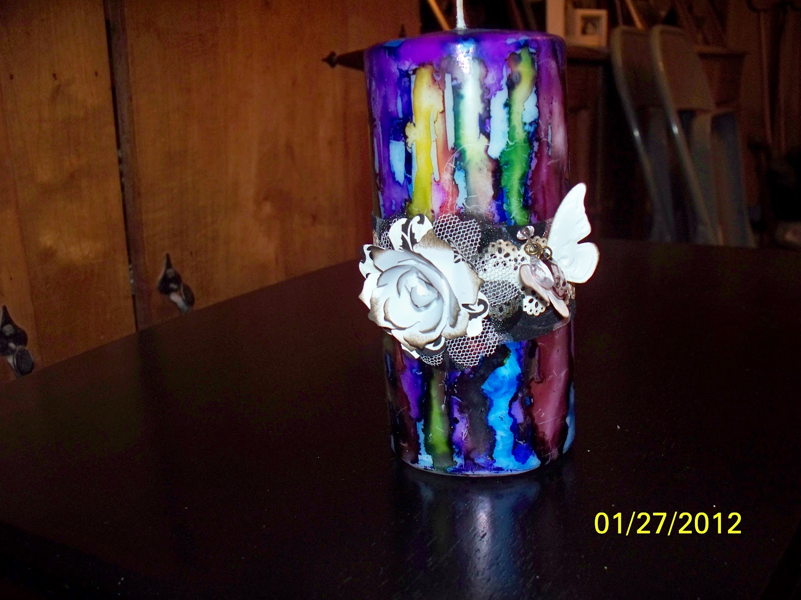 For my Challenge, I'm asking people to use their Alcohol Inks on a project of their choice. Use one or two colors, or as many as you like. You can use the inks on a card, a layout, a home decor item, or whatever your imagination comes up with! In order to give some inspiration, I am Posting a Tutorial I made using Alcohol Inks and a Candle!