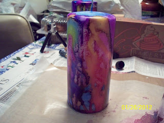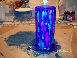9. When you have finished with your Inks, place Candle onto a paper plate to dry.