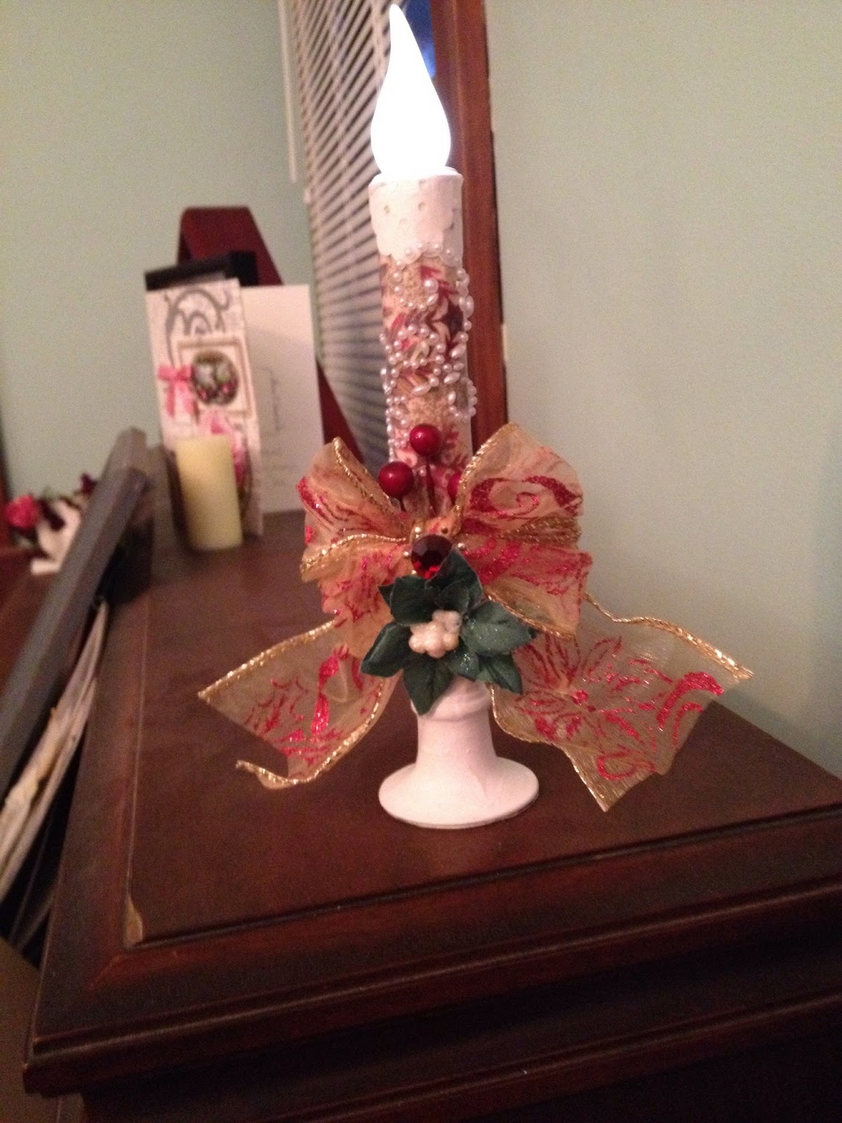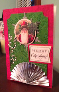 So, since it hasn't been long since Christmas, I think I'm just going to show some Christmas Cards & some altered Battery Operated Candles that I also made from LAST year (2014)! As per norm, the cards contain mostly Anna Griffin product! My mentor! Sigh..