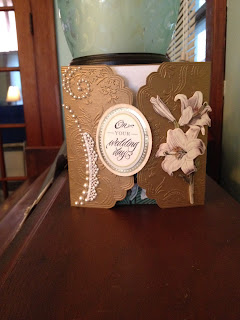 I know it's been several months since I've posted anything on this blog. There are various reasons for my absence, the main centering around the health of my dad. Not long after his 91st birthday (see card from previous post), he began falling more around the house, until the 25th of November when he was taken to the ER. That would end up being the last day he would spend at home. From that day until the 21st of January dad was either in one of two hospitals, or The Laurels, a Care Facility where he was strengthening his legs so he could come back home. I was with dad every day at these facilities, except for 2 days when I had a cold. Many nights were spent "sleeping" in hospital and facility chairs. I did not have the time or opportunity to create Cards this past Christmas. For those of you who usually receive a card from me, I apologize for that, but circumstances were totally out of my control.